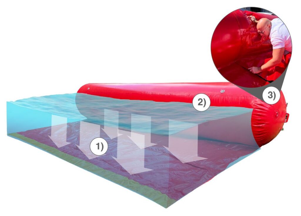 O Φουσκωτός Σωλήνας Πλημμύραςείναι ένα πολυτμηματικό φουσκωτό σωλήνα που συνδυάζεται σε μια προσωρινή φράγμα προστασίας από πλημμύρες.